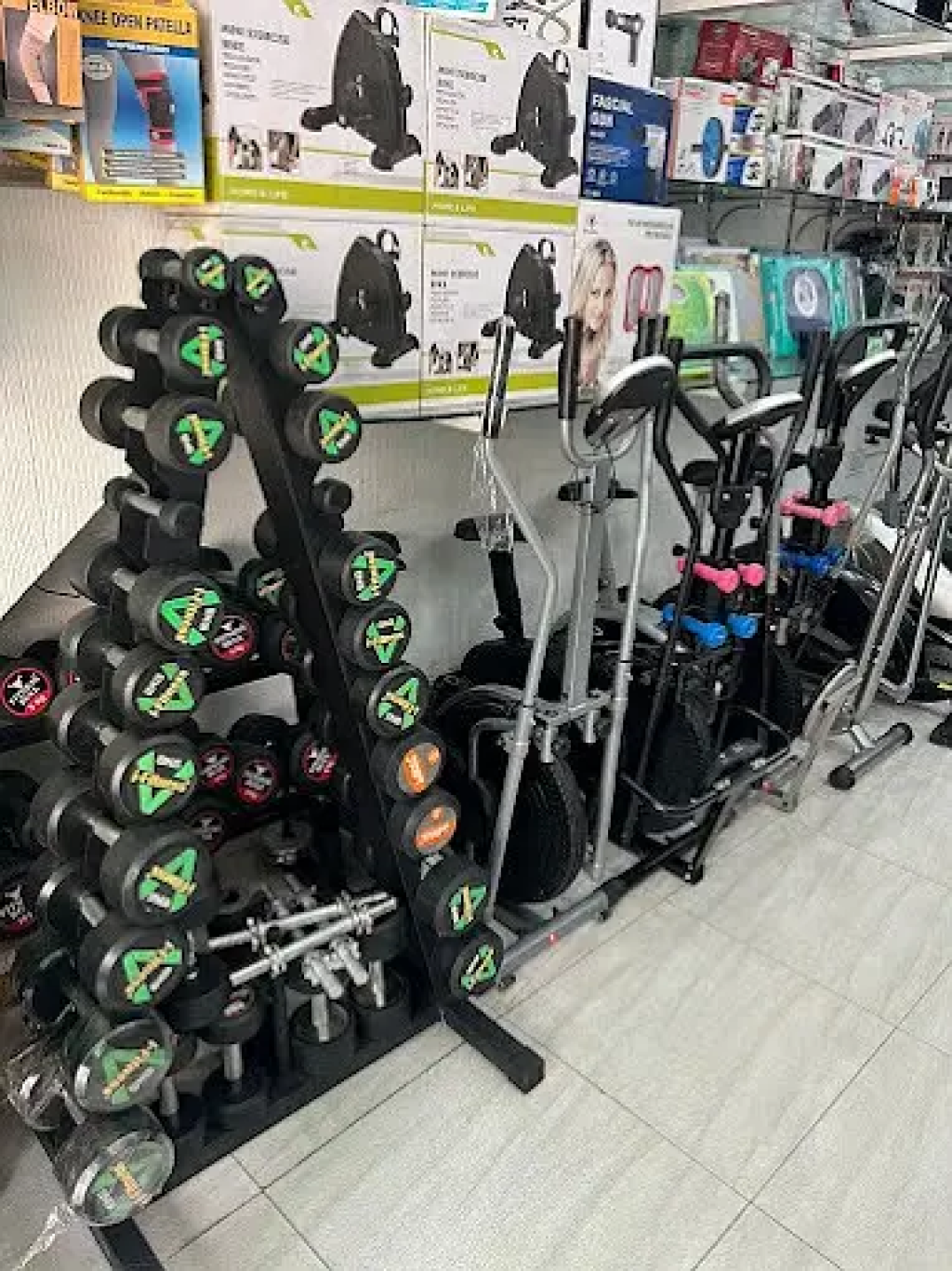 . Here, we deal in all fitness items you need:TreadmillsEllipticalsMatsDumbbellsAll gym itemsWe offer competitive prices and high-quality products to meet all your fitness needs. A. A Fitness is dedicated to helping you achieve your fitness goals with the best equipment on the market. : +