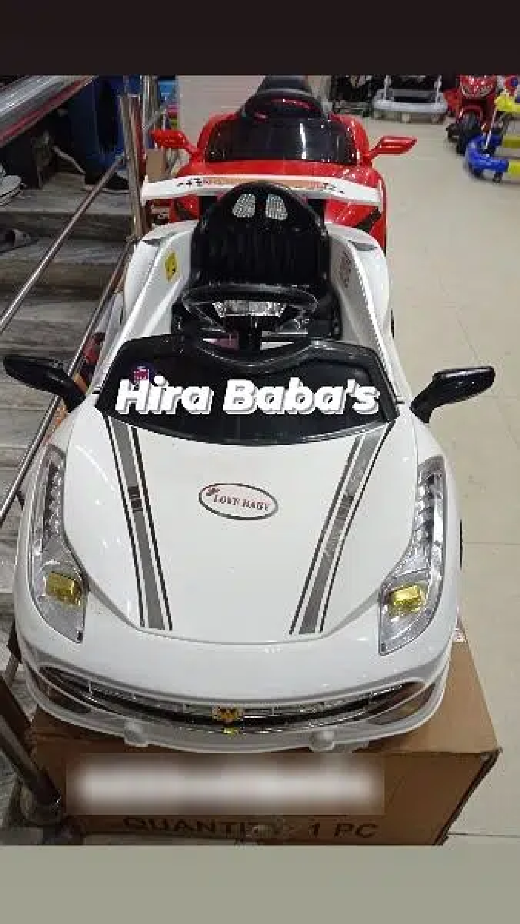 Hira Baba's Kids MartBattery Operated Kids CarsKeys FeaturesAvailable In Both Single Battery Single Motor And Double Battery Double MotorBoth Manual And Remote Control OperatedAging: 1 Year To 12 YearsDelivery Available All Over PakistanPrices Are Different According To Models And Designs Starting price 16500Our display is in Gulshan Ravi Lahore opposite KFC
